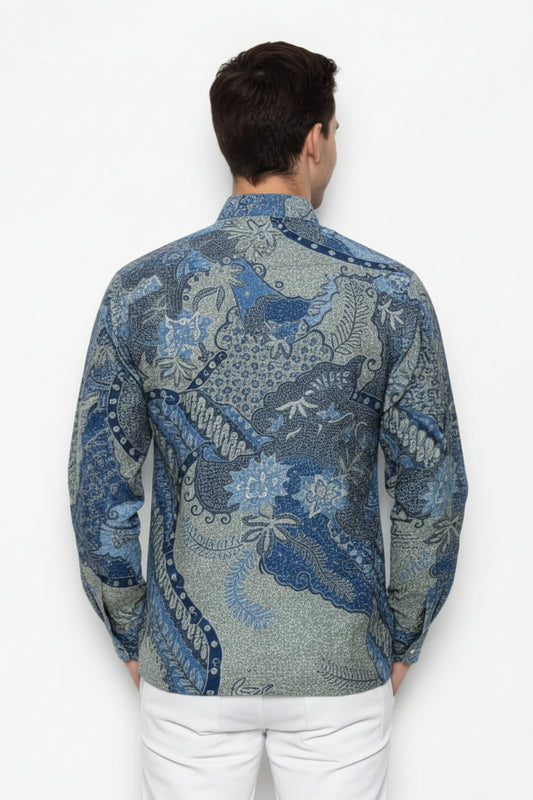 Men's Batik Shirt – Azure Fern | Long Sleeves