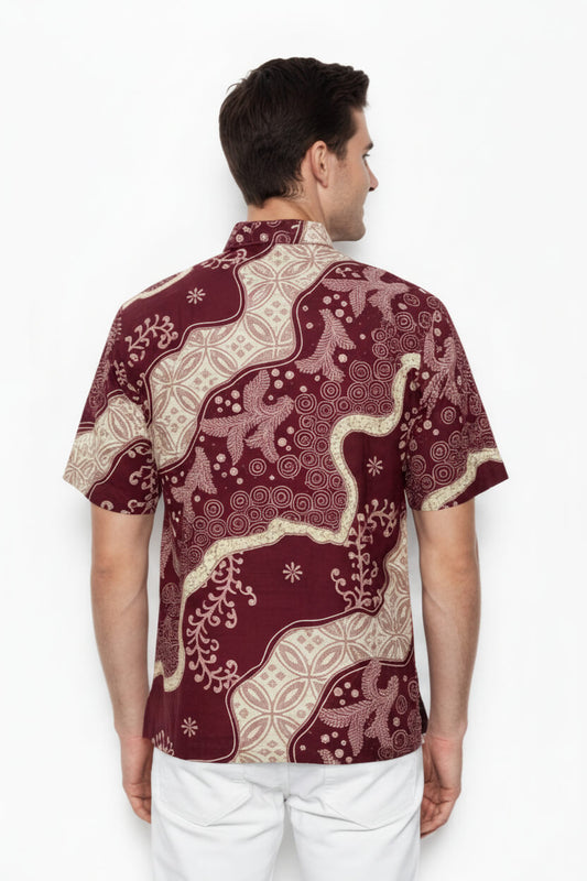 Men's Batik Shirt – Crimson Laurel | Short Sleeves
