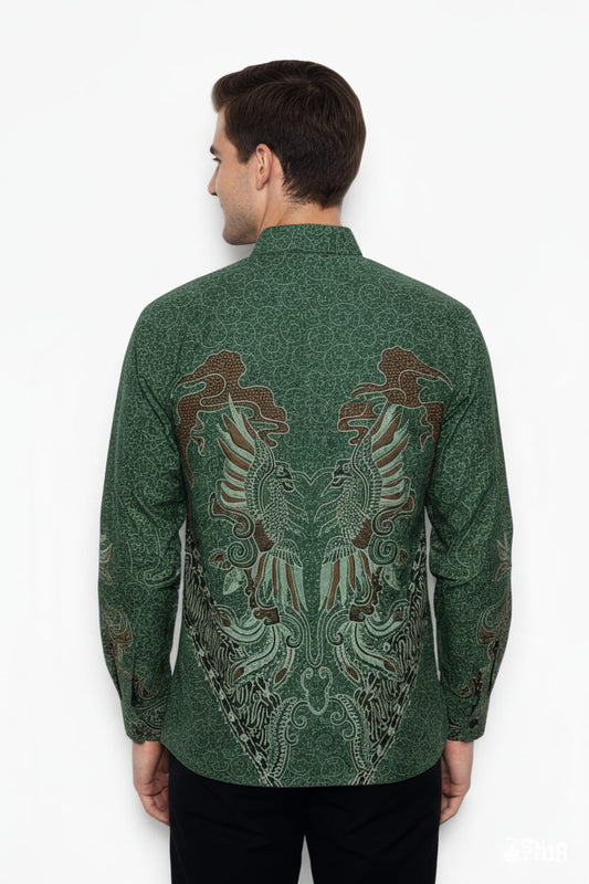 Men’s Batik Shirt – Emerald Phoenix | Long Sleeves