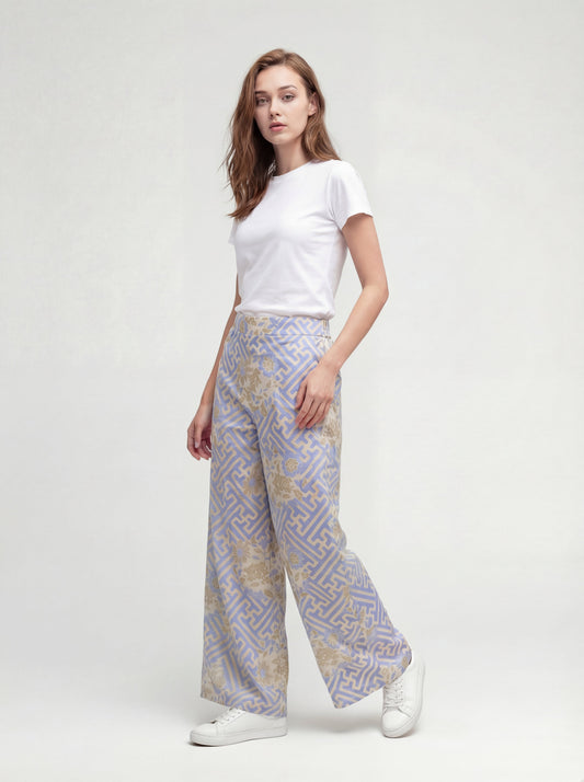 Women's Batik Wide Pants - Labyrinth Blossom